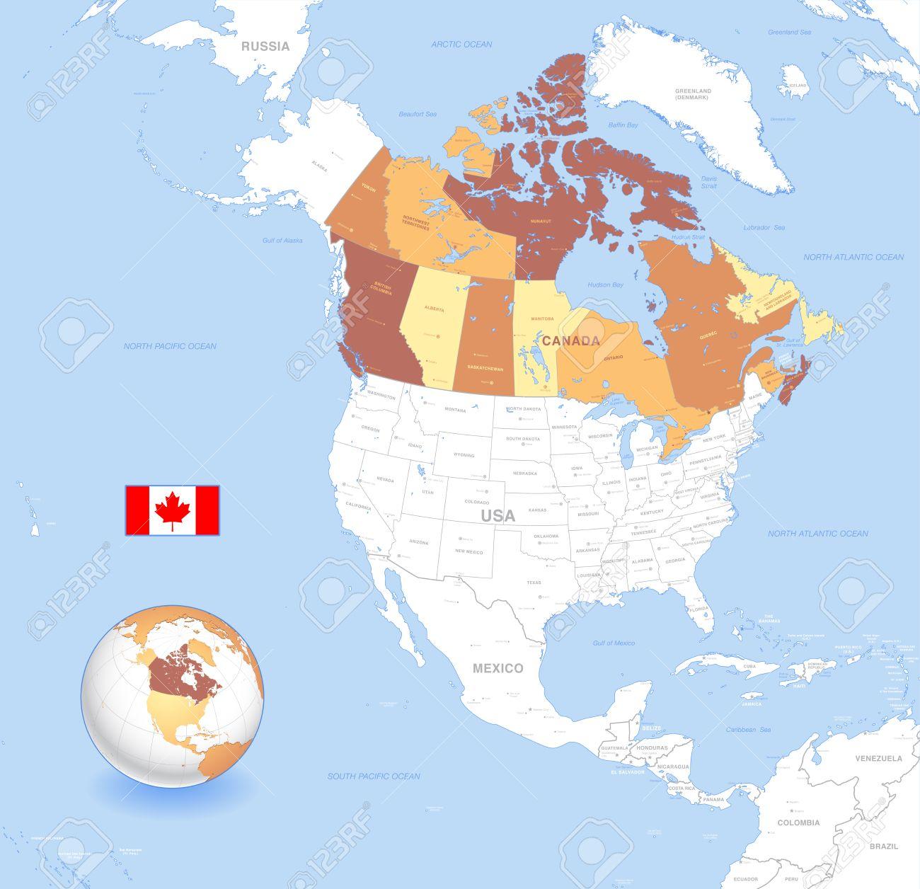 Canada globe kaart. Atlas kaart van Canada (Noord-Amerika - Amerika) om af te drukken. Atlas kaart van Canada (Noord-Amerika - Amerika) te downloaden.